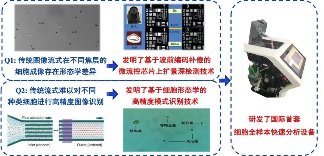 “基于气液界面单细胞捕获及叶绿素荧光表征的单微藻细胞活性动态监测新方法与装置”发明专利属于船舶海洋环保领域,团队围绕该核心专利已申请国际PCT专利1项,授权国家发明专利22项,形成了完整的专利群,同时依托完善的知识产权管理体系,对专利技术实施了有效保护。该专利创造性地利用气-液界面实现单个细胞的快速捕获,以微流控芯片作为检测平台,激光诱导叶绿素荧光检测微藻细胞活性,解决了本领域关键性、共性技术难题,研发了微流控微藻活性快速检测设备、微藻活性流式检测仪等产品,构建了一套船舶海洋生物污染物快速定量检测体系,为我国海上国门生物安全防控做出了重要贡献。