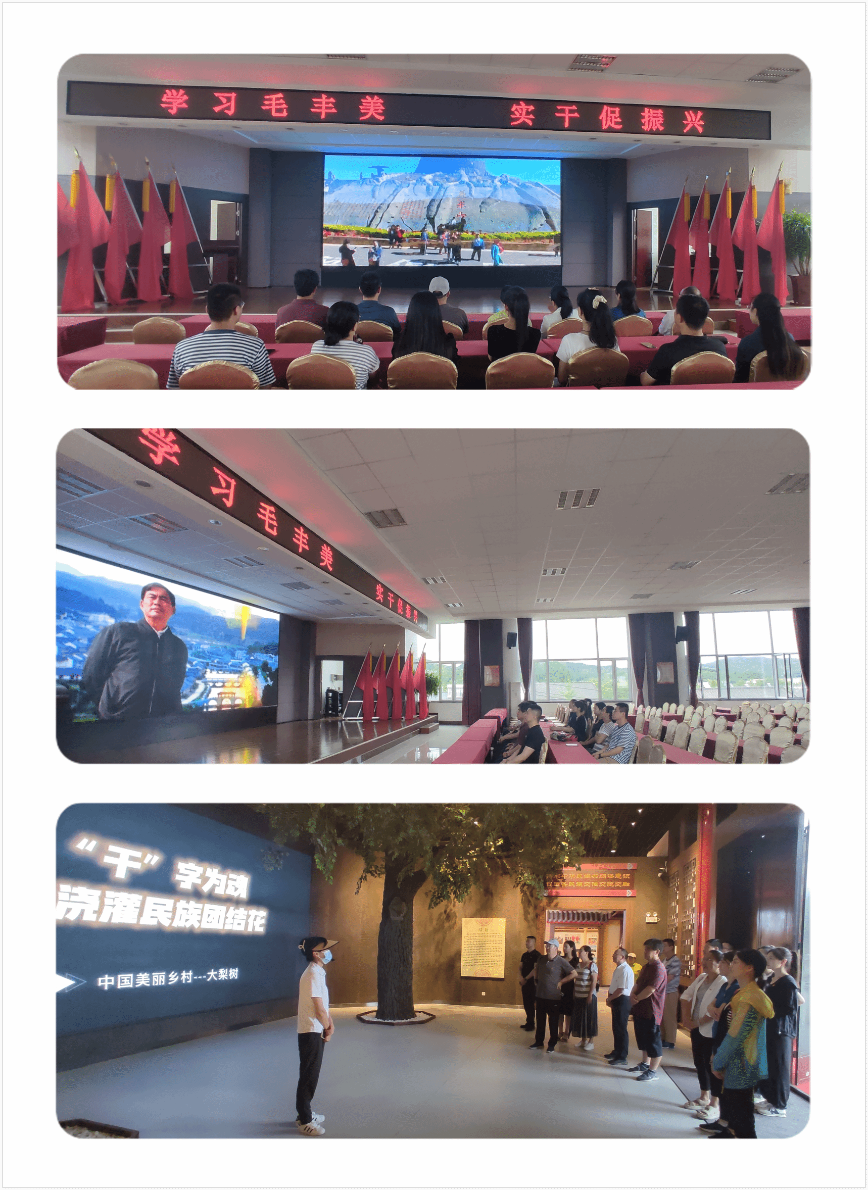 教工党员观看了全国优秀共产党员毛丰美同志专题片《丰碑》,参观了毛丰美先进事迹陈列馆、“干”字文化广场、铸牢中华民族共同体意识体验馆,学习了毛丰美同志坚持不懈地带领党员群众苦干、实干、巧干,把昔日贫穷落后的大梨树村建设成为“中国最美乡村”的先进事迹。