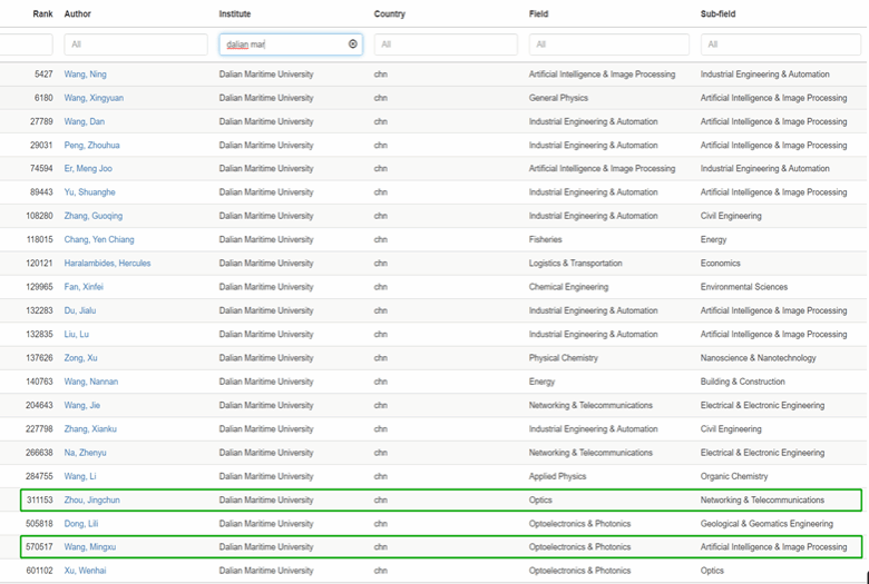 近日,美国斯坦福大学和爱思唯尔数据库(Elsevier Data Repository)发布2023全球前2%顶尖科学家榜单(Stanford University Top 2 Scientists List)。我校博士后周景春、汪明旭入选2023全球前2%顶尖科学家“年度影响力”榜单。