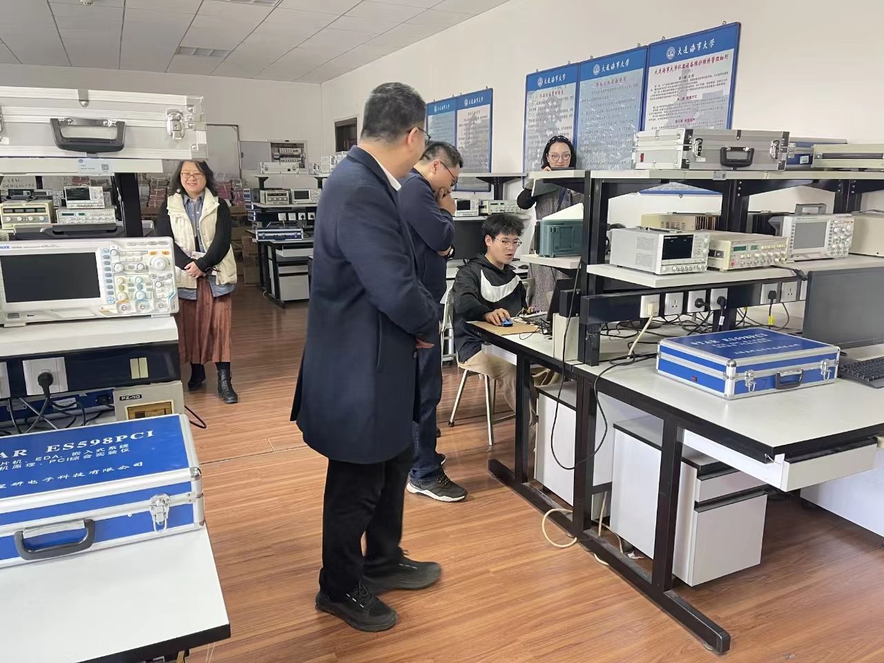 2024年3月15日,大连东软信息学院实验实训中心主任张志亮、智能与电子工程学院院长宋文斌等一行7人到访电工电子实验教学中心。