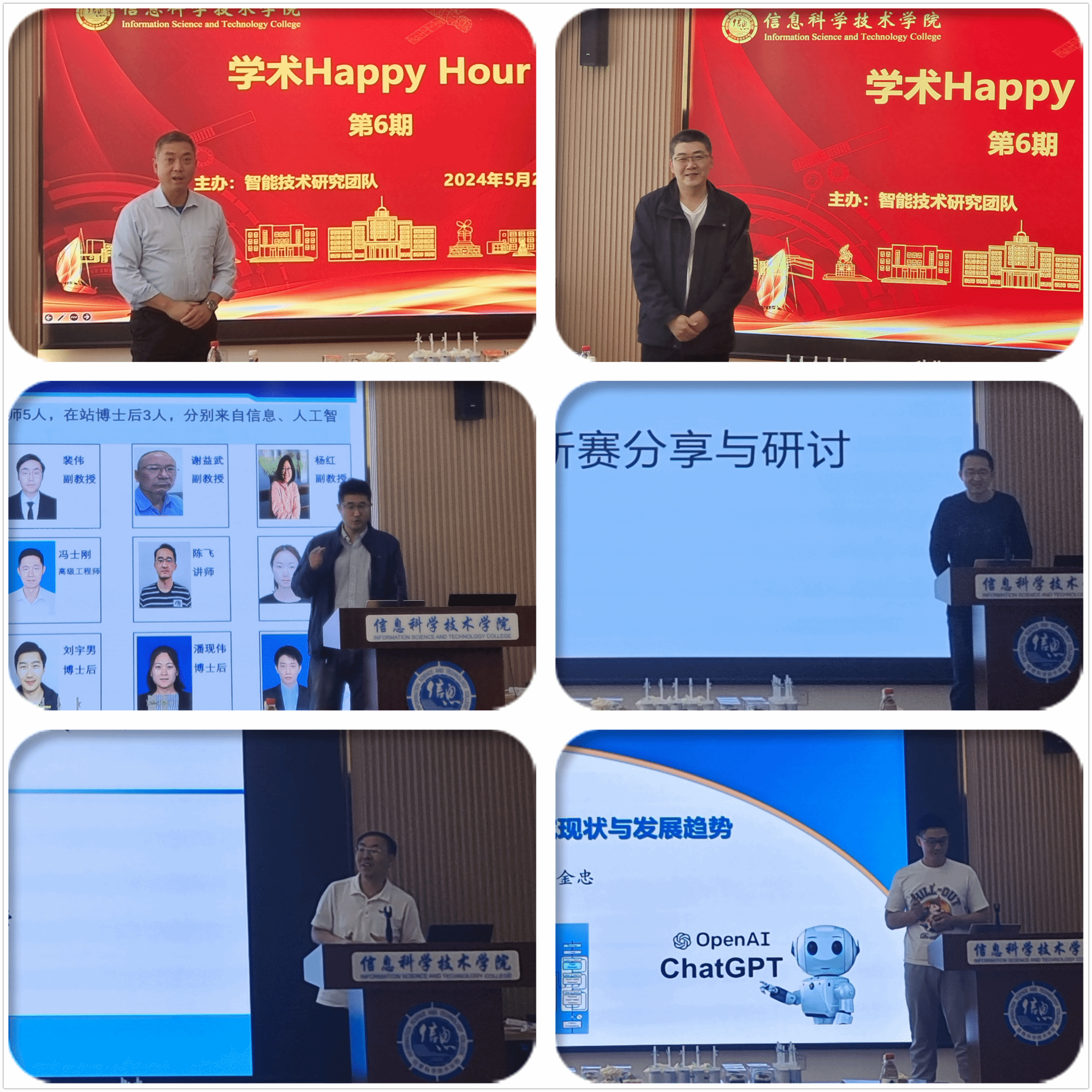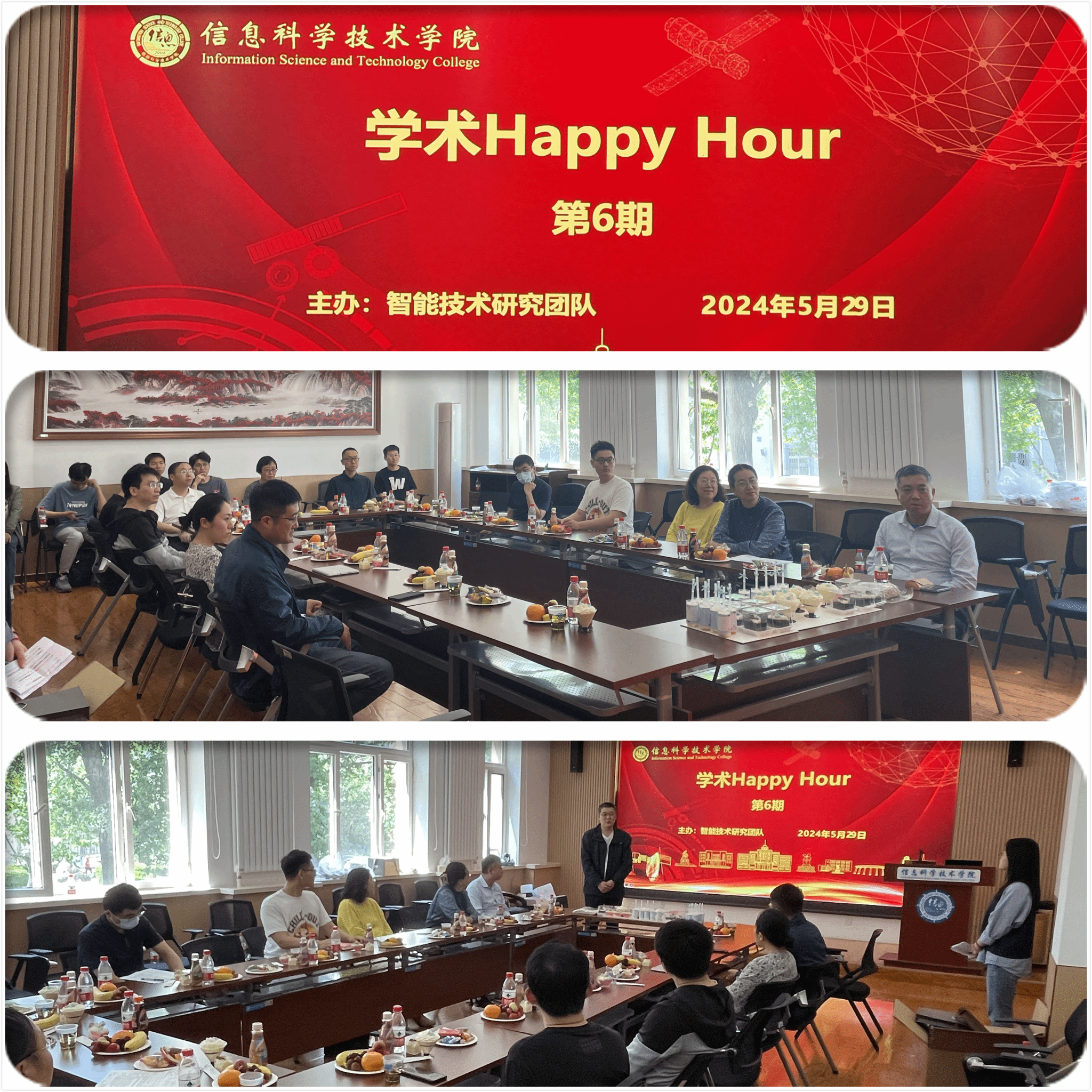 2024年5月29日下午,大连海事大学信息科学技术学院在电航楼218成功举办了“科教融合,协同发展”的第6期“Happy Hour”学术活动。本次活动由智能技术研究团队主办,活动邀请了学院符策副院长和宁博副院长致辞以及学院的教职工出席。