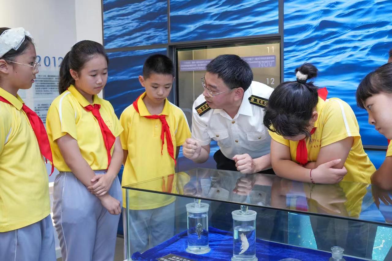 7月11日是第19个中国航海日,今年中国航海日活动主题是“扬帆新丝路,奋楫新格局”。当日,辽宁省大连市大中小学生代表登上我国首艘自主开发设计专用航海教学实习船“育鲲”轮,走进全国首家航海教育博物馆,探秘海洋科技新装备,走进航海的世界,感受航海的魅力,共赴深蓝之约。