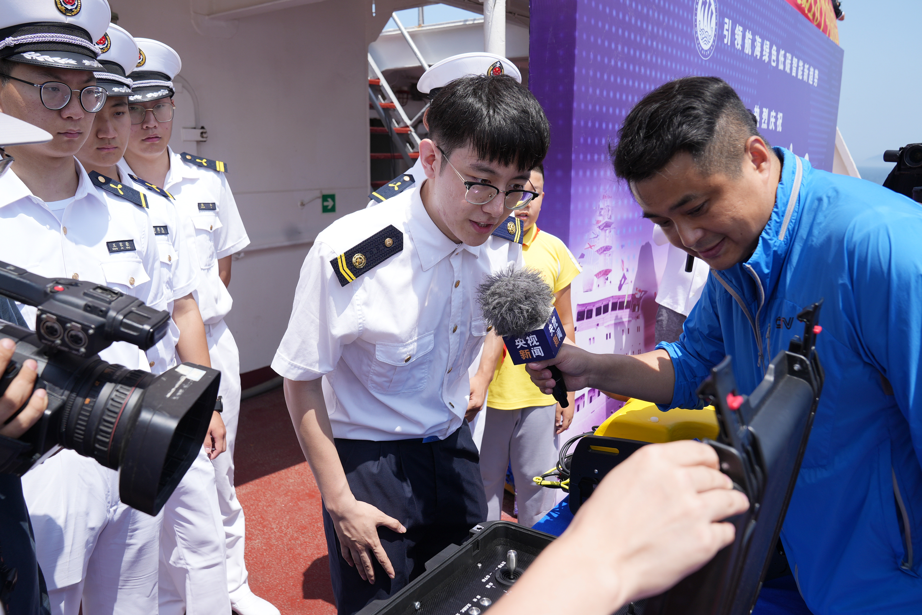 大连海事大学2022级轮机工程硕士研究生孟昭辰进行了机器人海底船底检测项目展示。该项目由大连海事大学轮机工程学院徐敏义教授团队开展,首次突破国内水下仿生触觉感知技术,提出新型水下图像增强算法,实现了船舶水下高效率、高精度、高稳定性检测。