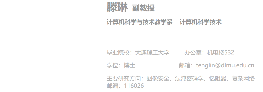 | 主要研究图像信息安全、混沌密码学、忆阻器、复杂网络等,包括图像加密、图像信息隐藏、图像水印,混沌系统研究、忆阻器电路非线性分析等。 |